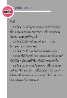1.กล้อง DSLR มีคุณภำพของภำพที่ดีกว่ำกล้อง