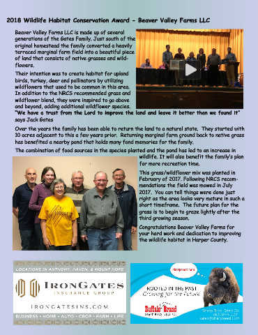 2018 Wildlife Habitat Conservation Award - Beaver Valley Farms LLC