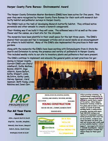 year they were recognized by Harper County Farm Bureau for their work with monarch but-