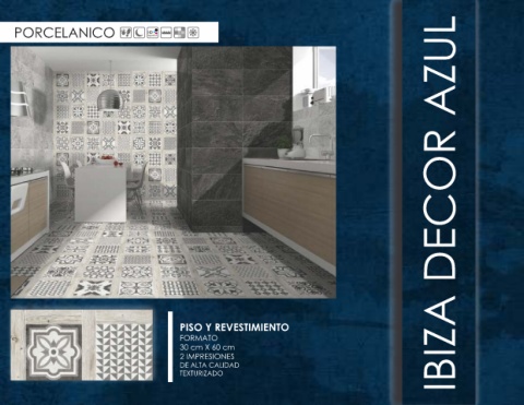 PORCELANICO PISO Y REVESTIMIENTO IBIZA DECOR AZUL FORMATO 30 cm X 60 cm 2 IMPRESIONES DE ALTA CALIDAD TEXTURIZADO