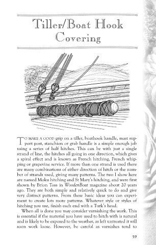 O MAKE A GOOD grip on a tiller, boathook handle, mast sup-
