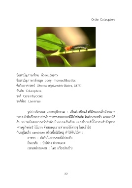 ชื่อวิทยาศาสตร์ Oberea nigriventris (Bates, 1873)