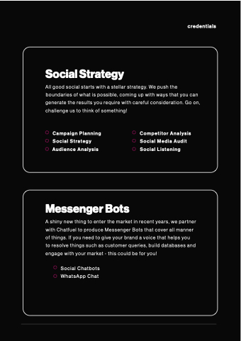Strategy All good social starts with a a a a a stellar strategy We push the boundaries of what is possible coming up with ways that you can generate the results you require with careful consideration Go on on on challenge us to think of something!