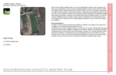 As budget allows the town should consider a new surface for this field. Starting with laser grad- SECTION 5 - RECOMMENDATIONS/ PRIORITIZATION