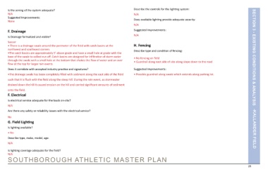 base of the swale to collect run off. Catch basins are designed for infiltration of storm water • No fencing on field SECTION 3 - EXISTING CONDITIONS & ANALYSIS