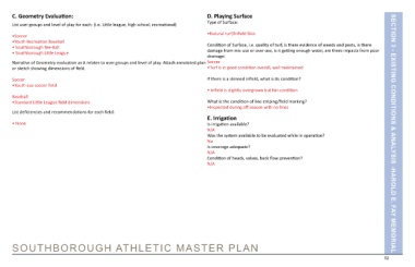 • Infield is slightly overgrown but fair condition SECTION 3 - EXISTING CONDITIONS & ANALYSIS