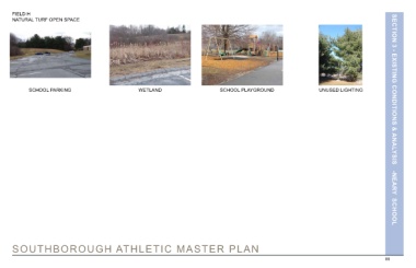 FIELD H NATURAL TURF OPEN SPACE SCHOOL PARKING WETLAND SCHOOL PLAYGROUND UNUSED LIGHTING SECTION 3 - EXISTING CONDITIONS & ANALYSIS SOUTHBOROUGH ATHLETIC MASTER PLAN -NEARY SCHOOL 89