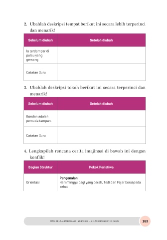 4. Lengkapilah rencana cerita imajinasi di bawah ini dengan