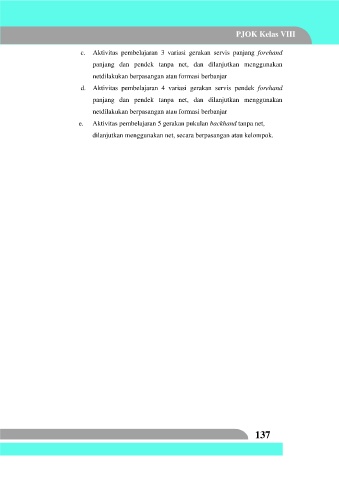 d. Aktivitas pembelajaran 4 variasi gerakan servis pendek forehand