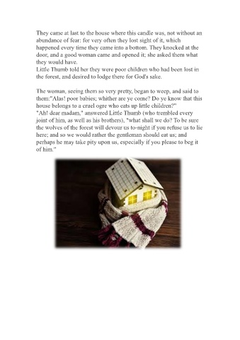 Little Thumb told her they were poor children who had been lost in