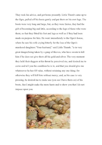 the Ogre, pulled off his boots gently and put them on his own legs. The