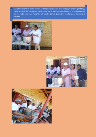 “An ideal teacher is a role model and he/she subscribes to a pedagogy of care (Nodding,