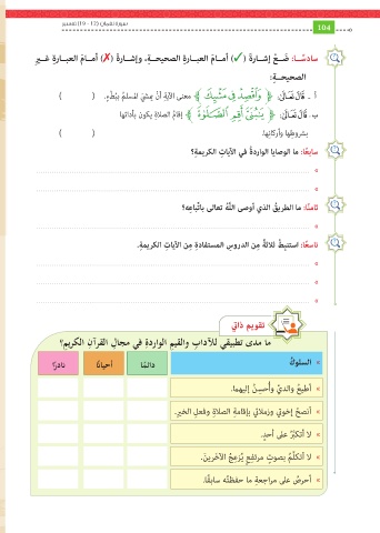 ما مدى تطبيقي للآدا ِب والقيِم الواردِة في مجا ِل القرآ ِن الكريِم؟