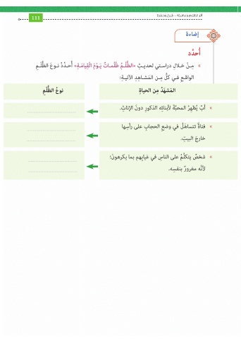 » ِمـ ْن خـا ِل دراسـتي لحديـ ِث «الظُّلْـ ُم ظُلُمـا ٌت يَـ ْو َم الْ ِقيا َمـ ِة» أُحـ ِّد ُد نـو َع الظُّلْـ ِم
