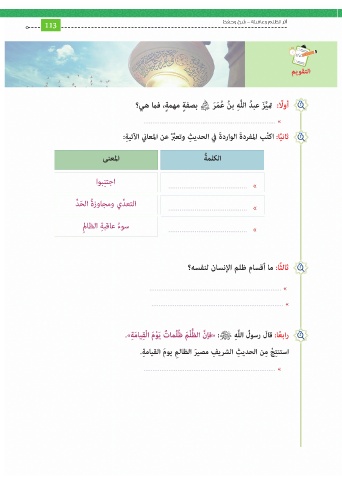 Page 113 - كتاب التربية الإسلامية للصف السادس الابتدائي