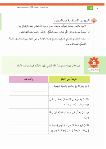 ِمن خلا ِل فه ِمك لدر ِس نب ِّي اللَّ ِه ُش َع ْي ٍب ،ما رأيُك في المواق ِف الآتي ِة: