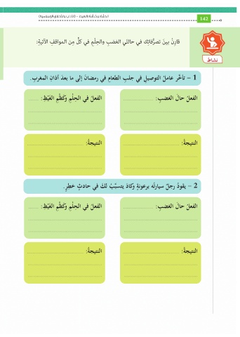 قا ِر ْن بي َن تص ُّرفاتِك في حالتَي الغض ِب وال ِحلْ ِم في ك ٍّل ِمن المواق ِف الآتي ِة: