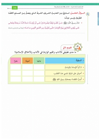 Page 145 - كتاب التربية الإسلامية للصف السادس الابتدائي