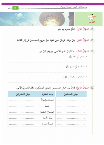 السؤا ُل الراب ُع :قاِر ْن بي َن جي ِش المسلمي َن وجي ِش المشركي َنَ ،وفْ َق الجدوِل الآتي.