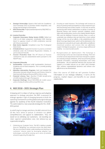 Other achievements during the year include: 4. NSE 2018 – 2021 Strategic Plan