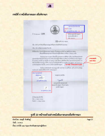 กรณีที่ 4 หนังสือภายนอก เพื่อพิจาณา สารบรรณทํา Stick Note ส่ง FAX ให้คณะทราบแล้ว รูปที่ 20 หนาจอตัวอยางหนังสือภายนอกเพื่อพิจารณา จัดทําโดย : สมฤดี สังขดิษฐ์ Page 21 วันที่ : 1 ต.ค.62 เรื่อง : การใช้ Less Paper สําหรับเลขานุการผู้บริหาร