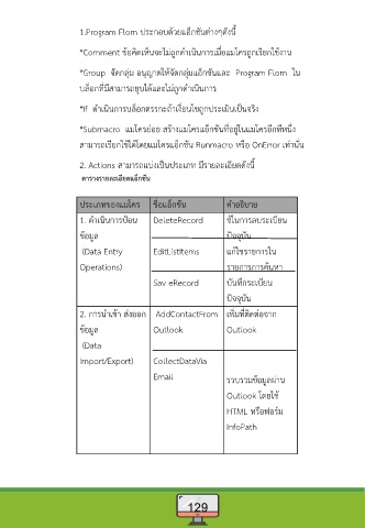 1.Program Flom ประกอบด้วยแอ็กชันต่างๆดังนี้