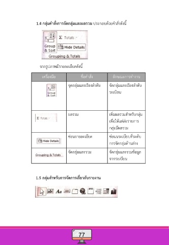 1.4 กลุ่มค ำสั่งกำรจัดกลุ่มและผลรวม ประกอบด้วยคําสั่งดังนี้