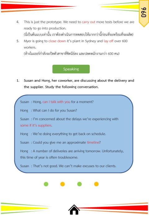 1. Susan and Hong, her coworker, are discussing about the delivery and
