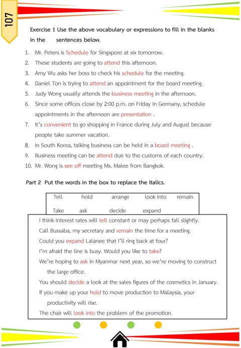 Exercise 1 Use the above vocabulary or expressions to fill in the blanks