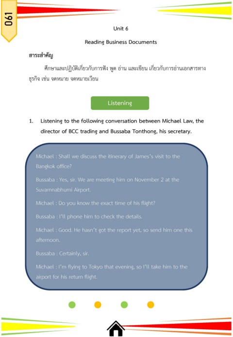 ศึกษาและปฏิบัติเกี่ยวกับการฟัง พูด อ่าน และเขียน เกี่ยวกับการอ่านเอกสารทาง