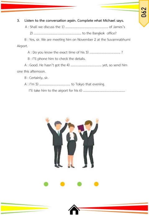 B : Yes, sir. We are meeting him on November 2 at the Suvarnnabhumi