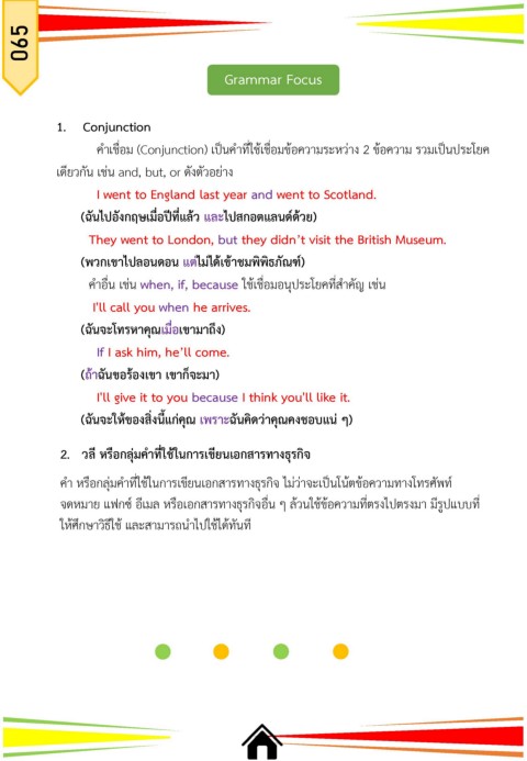 ค าเชื่อม (Conjunction) เป็นค าที่ใช้เชื่อมข้อความระหว่าง 2 ข้อความ รวมเป็นประโยค