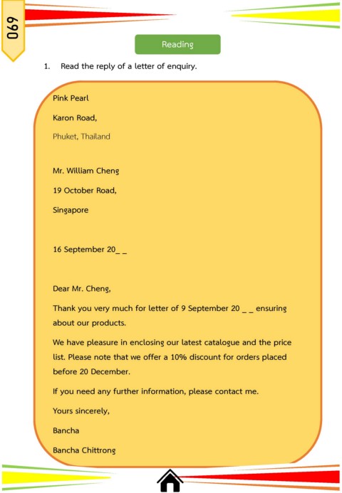 1. Read the reply of a letter of enquiry.