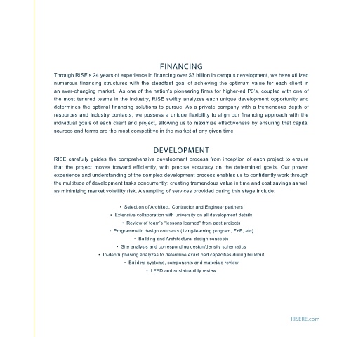 Through RISE’s 24 years of experience in financing over $3 billion in campus development, we have utilized