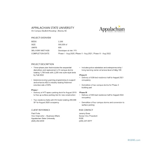 SF for August 2020 occupancy • Demolition of four campus dorms and conversion to