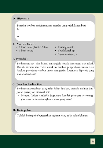 Berdasarkan alat dan bahan, rancanglah sebuah percobaan asap rokok.