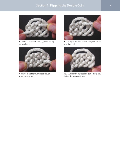 9. Weave the other running end over, 10. …under the rope below it at a diagonal.