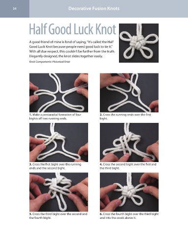 1. Make a pentaradial formation of four 2. Cross the running ends over the first