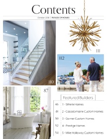 Contents October 2018 | PARADE OF HOMES 111 112 110 87 Featured Builders 46 1 - Sitterle Homes 48 2 - Casadomaine Custom Homes 50 3 - Garner Custom Homes 52 4 - Prestige Homes 54 5 - Mike Hollaway Custom Homes 1010 11