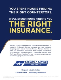 Security Service Insurance (SSI) is a subsidiary of Security Service Federal Credit Union. Products offered by SSI are not insured by the National Credit Union Administration (NCUA) and are not issued, guaranteed or