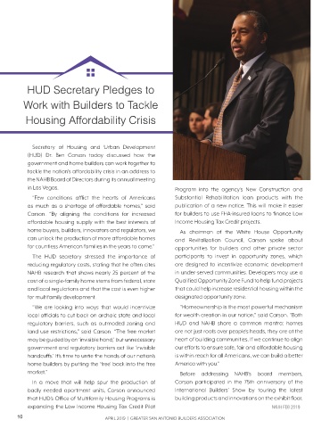 badly needed apartment units, Carson announced International Builders’ Show by touring the latest