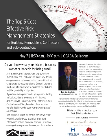 discussion with Builders, General Contractors, Sub committees for both NAHB and TAB. In addition, he serves as general