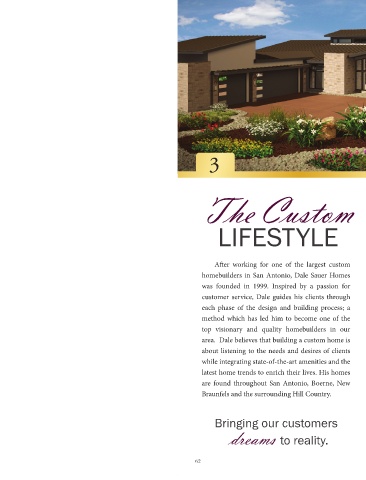 area. Dale believes that building a custom home is home. When you walk through the artistically