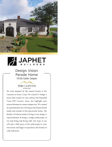 for their unique needs. Japhet Builders design and fl uidity of indoor/outdoor living in our design is