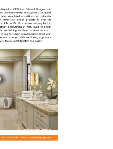 11888 Starcrest Dr. Suite 107, San Antonio, Texas 78247 | 210.404.9922 | www.loricaldwelldesigns.com