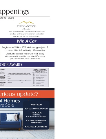 Vote for your favorite home while touring Parade of Homes ENTRY FORM - PARADE AUTO SWEEPSTAKES More than one check will void your vote.