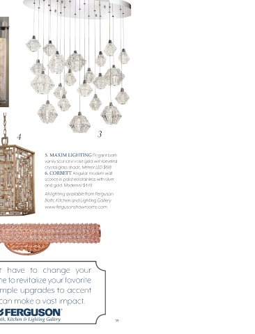 Ribboned Foyer Pendant. Flux $3,080 vanity sconce in rose gold with beveled