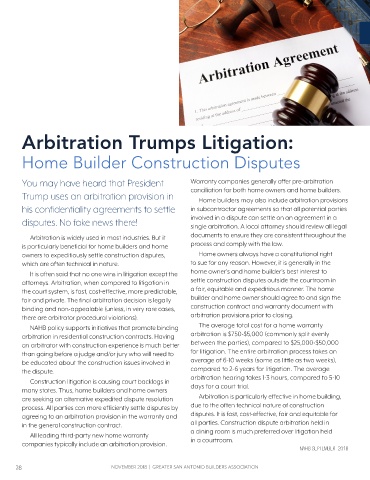 Trump uses an arbitration provision in Home builders may also include arbitration provisions