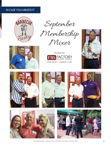 IN CASE YOU MISSED IT September Membership Mixer Hosted By NOVEMBER 2018 | GREATER SAN ANTONIO BUILDERS ASSOCIATION 29
