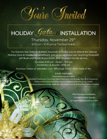 Purchase Tickets at sabuilders.com $80 Single Ticket | $850 Table of Ten